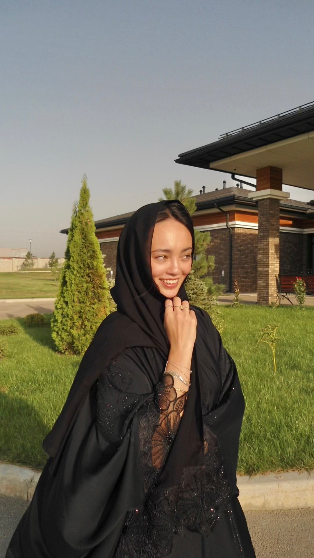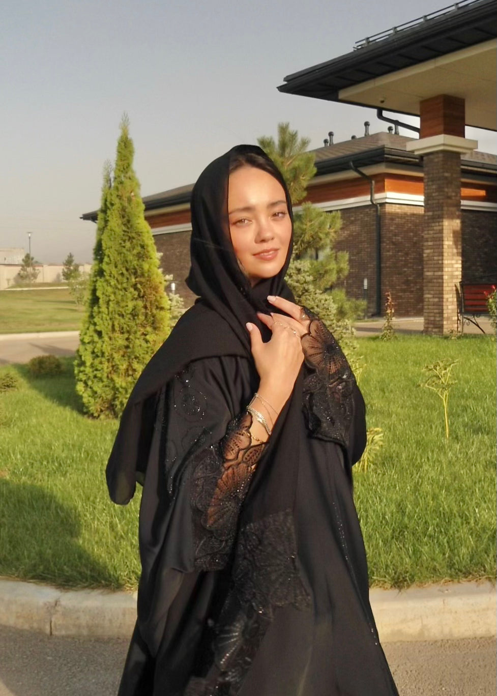 Premium Organza Outer Abaya, matching shawl