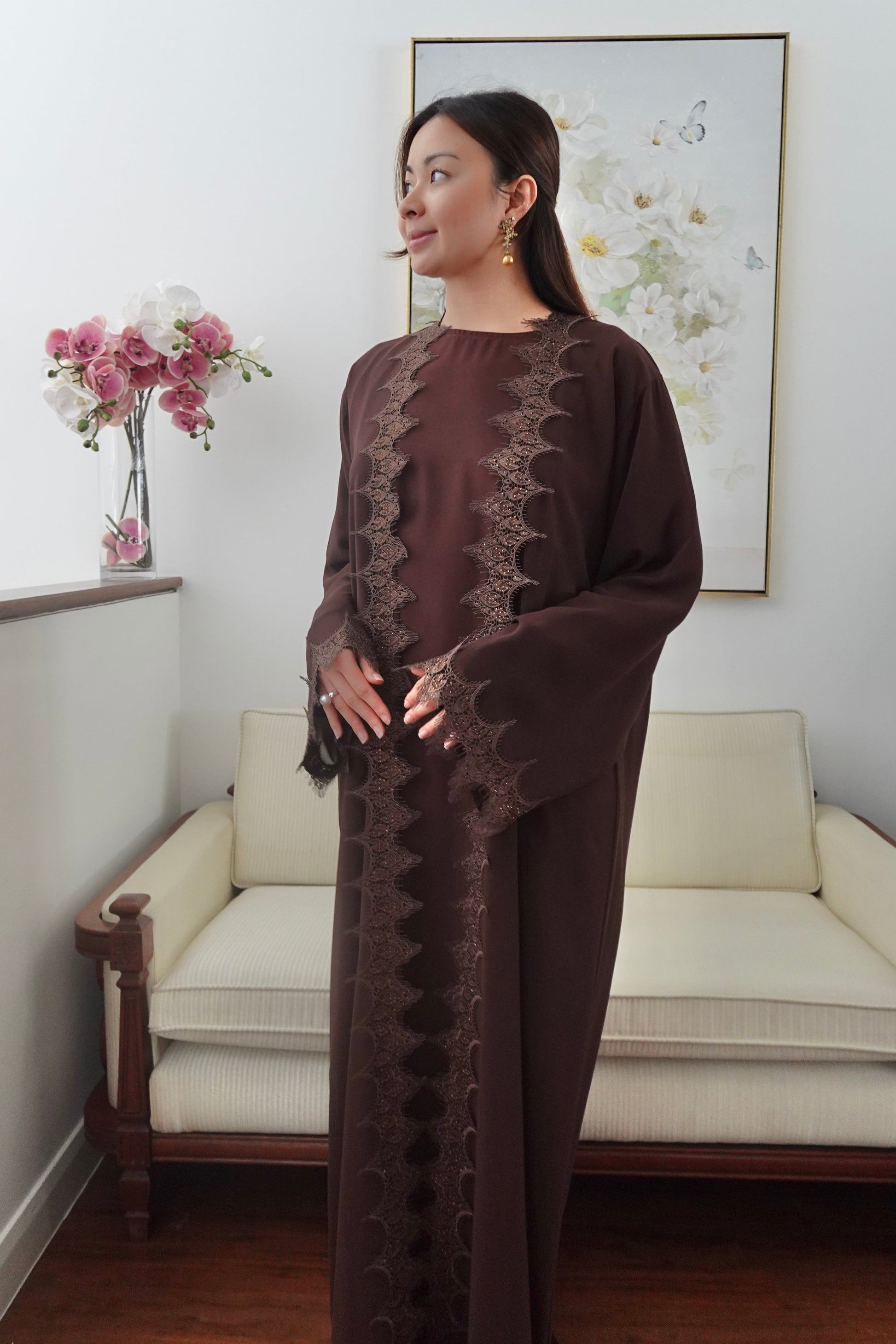 Premium organza Outer Abaya and Inner dress, matching shawl, detachable belt