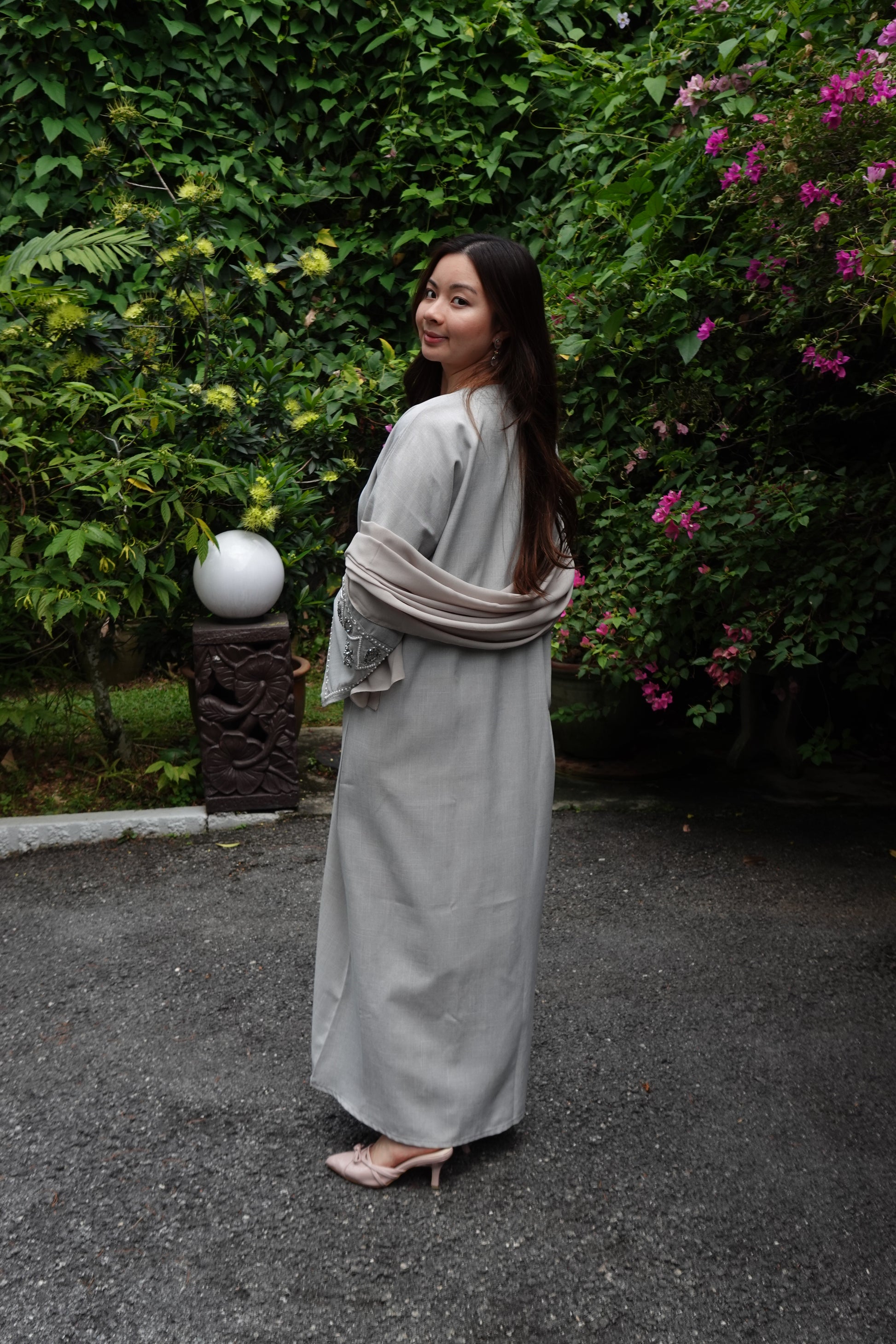 Timeless and sophisticated, this 2-piece abaya features delicate rhinestone & pearls embellishments along the sleeve - adding a subtle yet striking shimmer with every step. Crafted from lightweight, breathable fabric, it offers effortless elegance for day or night.